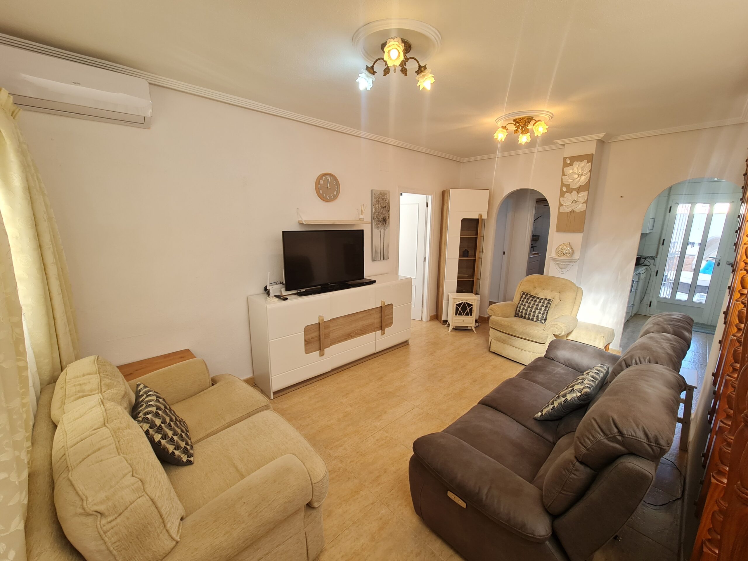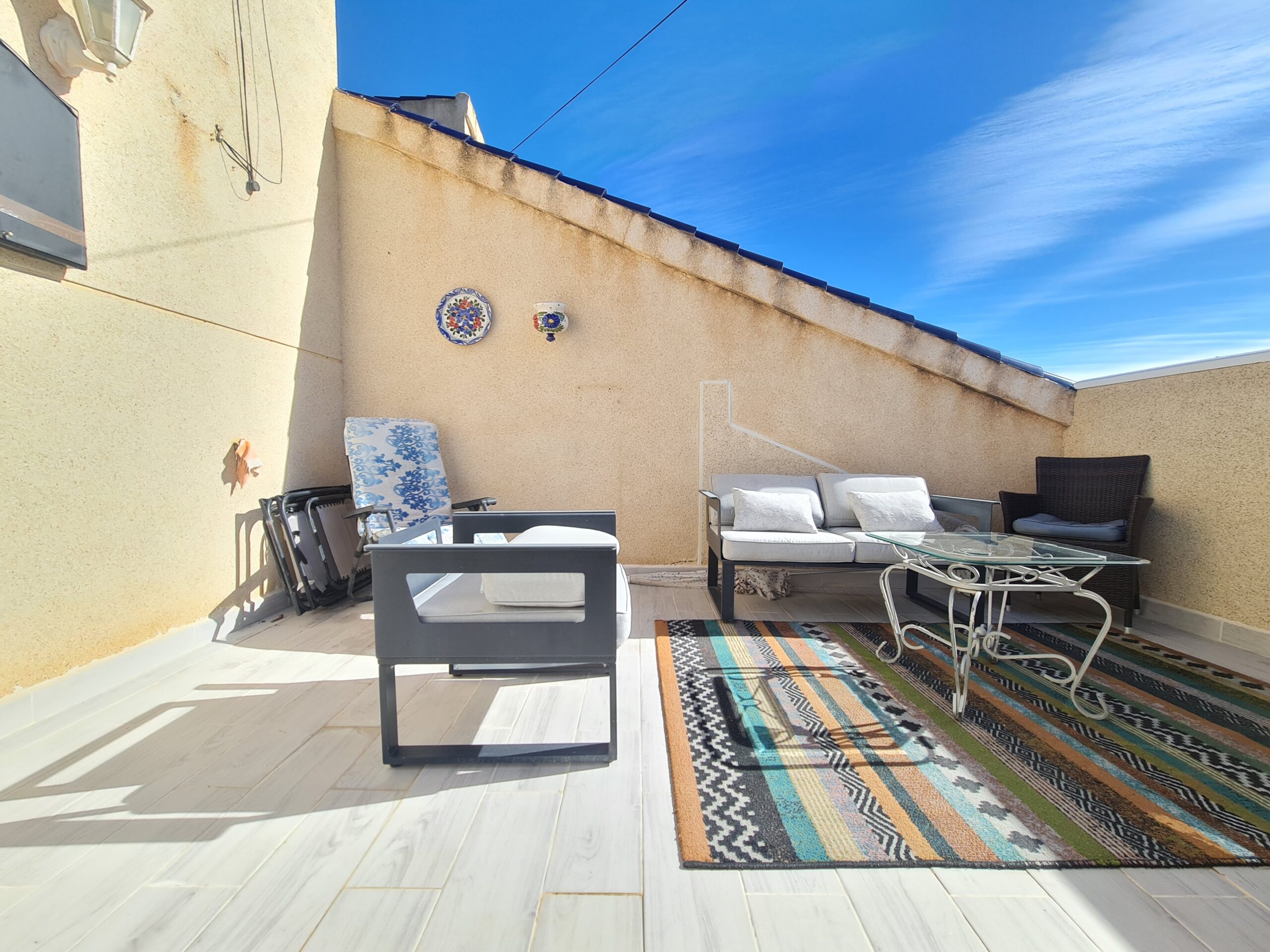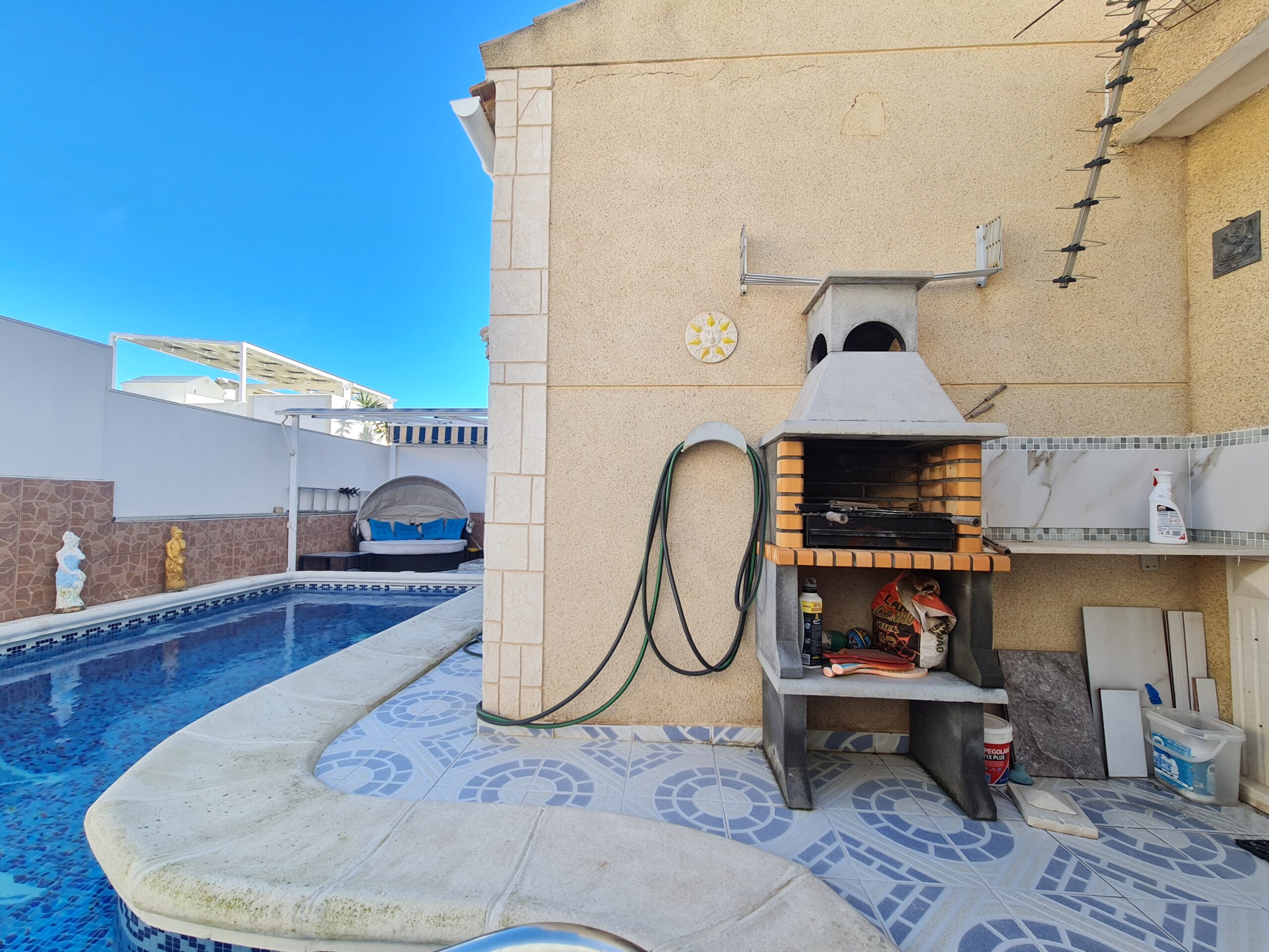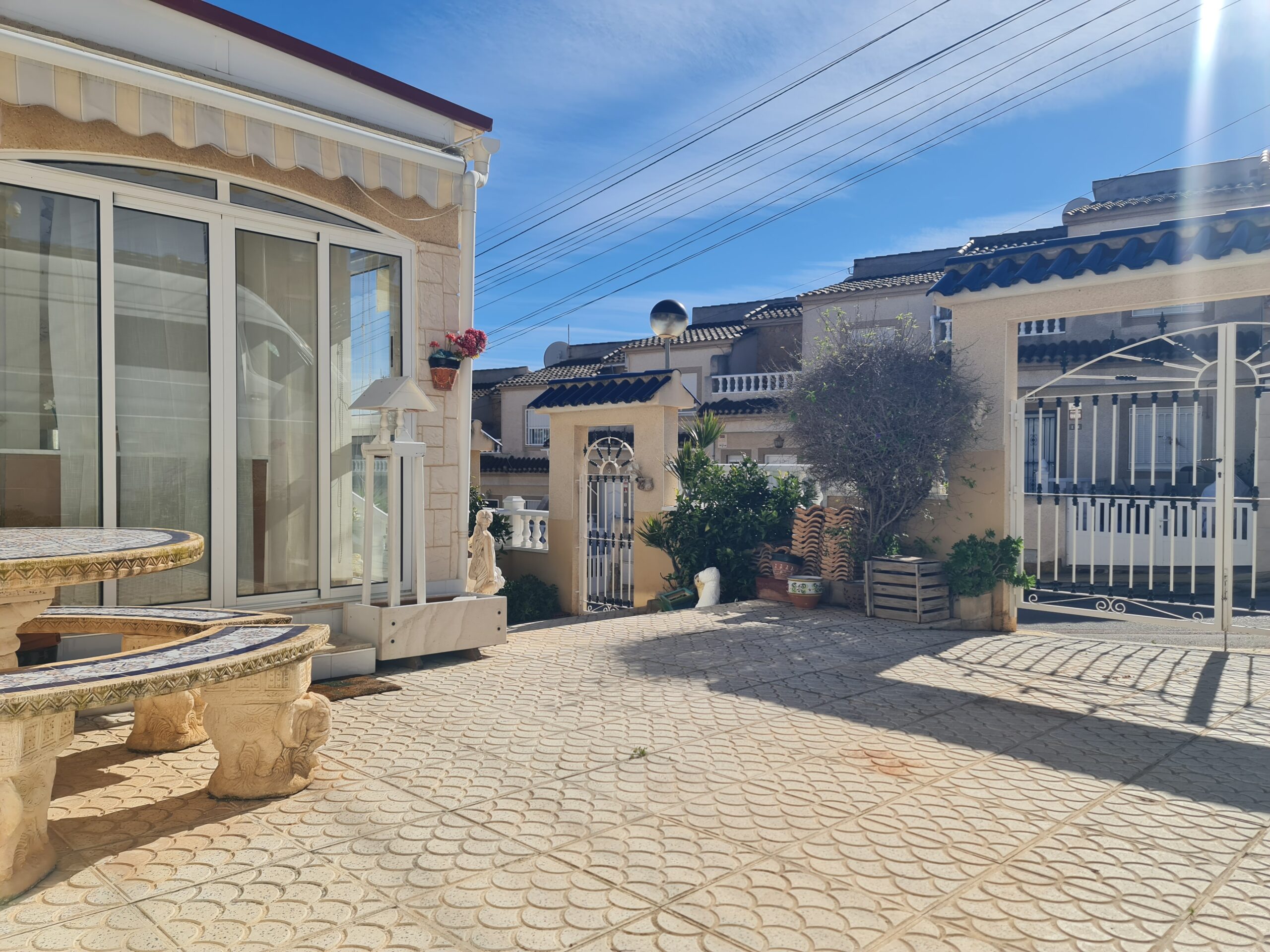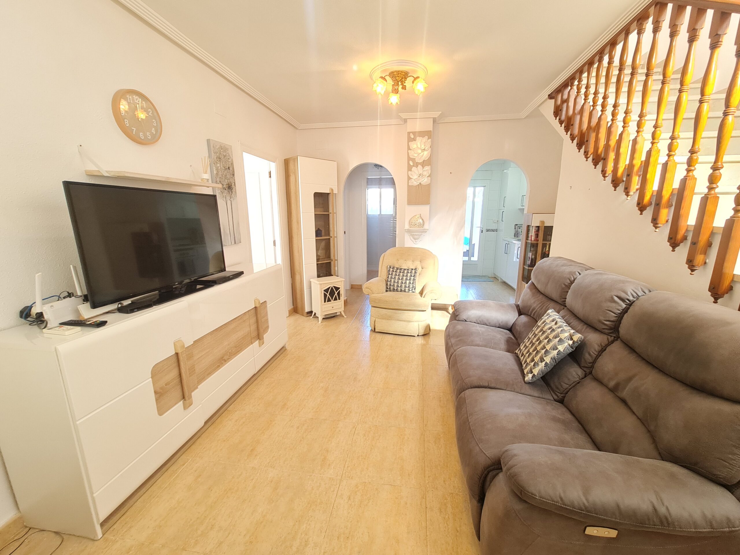 - Spectacular house with large outside space , private garage, private pool. House offer 2 bedrooms , 1 bathroom , living room and separate kitchen downstairs and 1 bedroom 1 bathroom upstairs. With a sunny terrace with a little sea views. La Fuente commercial center its not even 5 min drive. Also golf courses are just around the corner. Alicante airport 45 min drive. Sandy Beach only 6-7 min drive.: